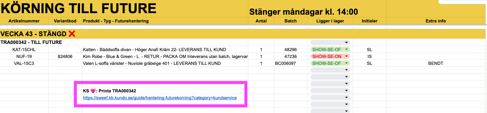 - Lämna notering till KS i kommentarerna: "KS 🩷 Printa ut etiketterna från