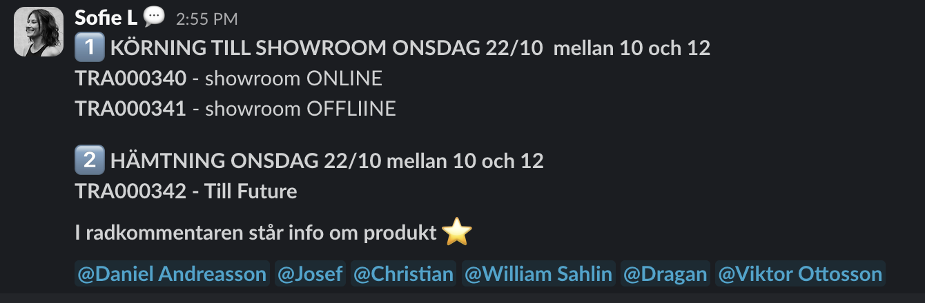 - Kolla att alla ordrar som skall vidare till kund är släppta och taggade antingen PENDING om KS skall packa eller RELEASED ifall den e klar för leverans. Lämna instruktions-kommentar till KS i BC-ordern. Ex. "KS: 🩷Packa och tagga RELEASED"